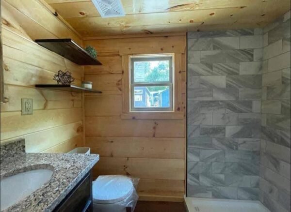 Wall & Cabinet Finishes: Natural log walls, Espresso cabinets