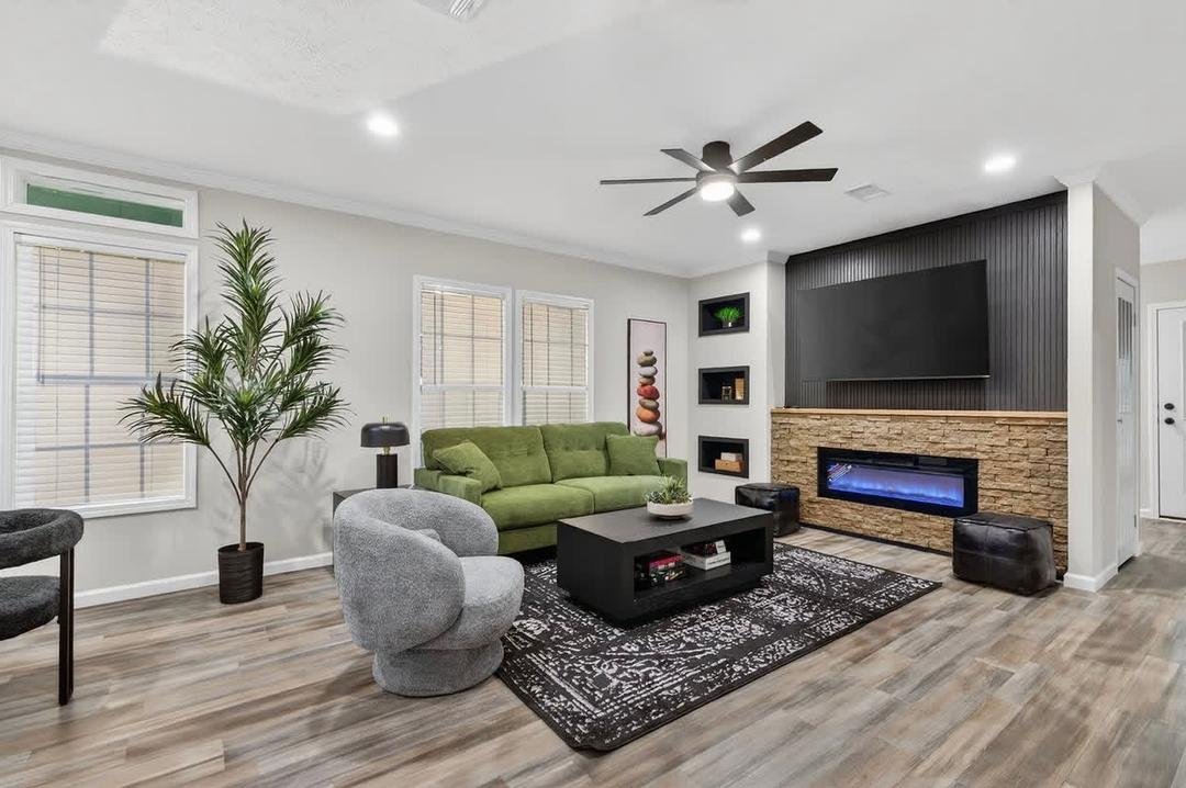 Meet The Stirling, a spacious 3 bedroom, 2.5 bathroom home offering 2,184 square feet of well-designed living space that blends bold design with everyday comfort. The layout is open and intentional, giving each area room to function while still feeling connected.